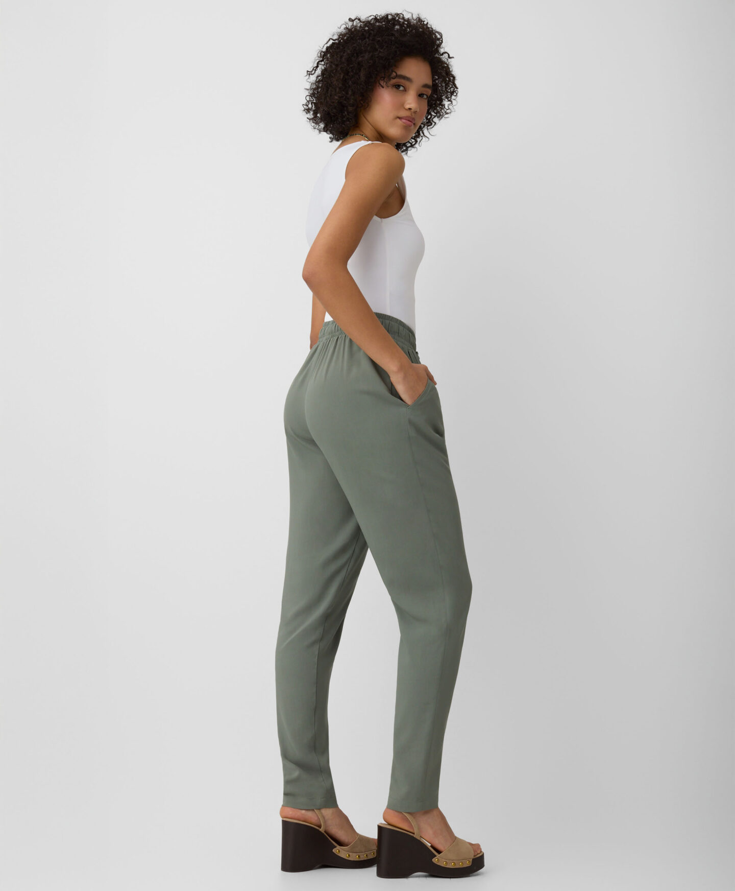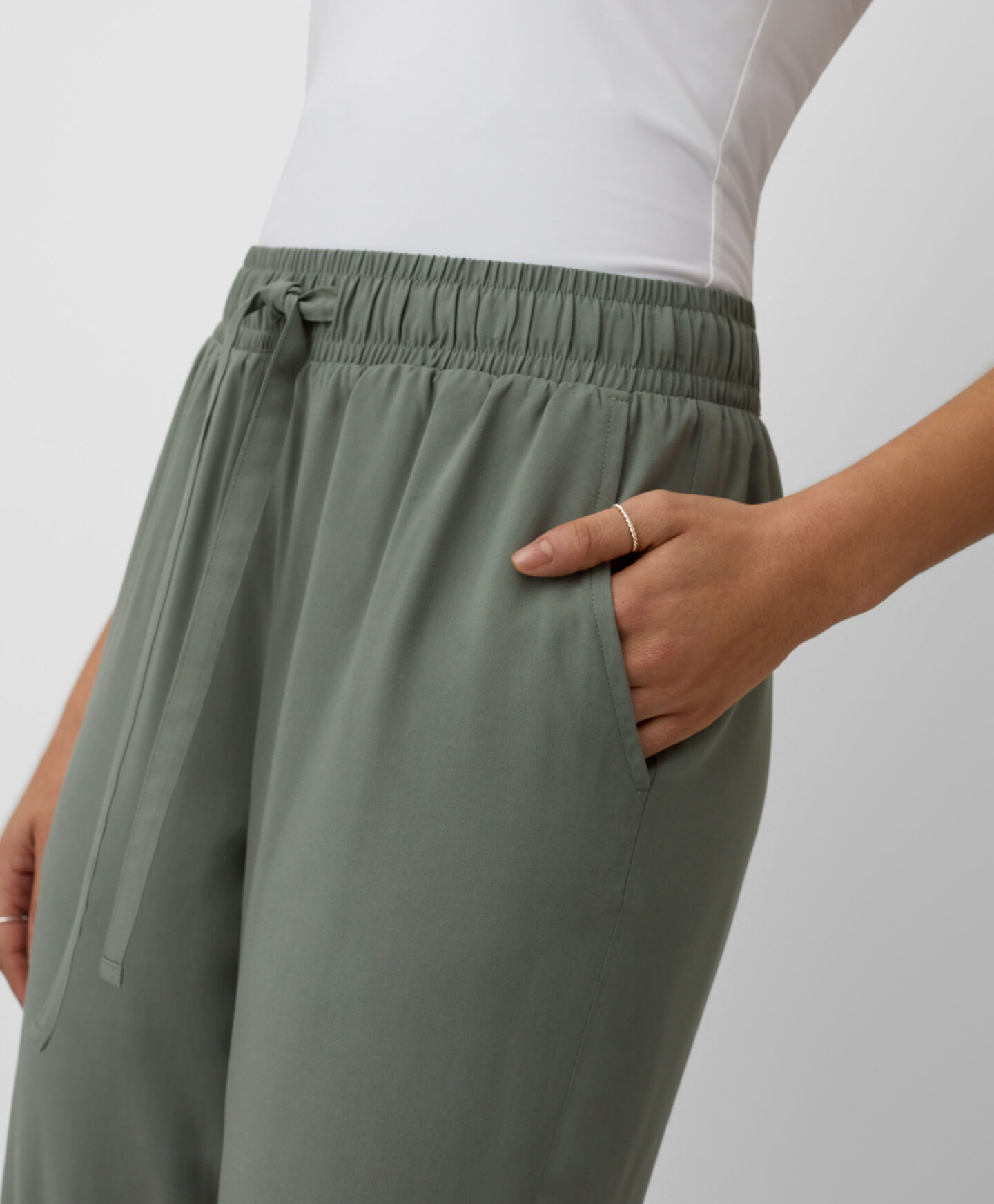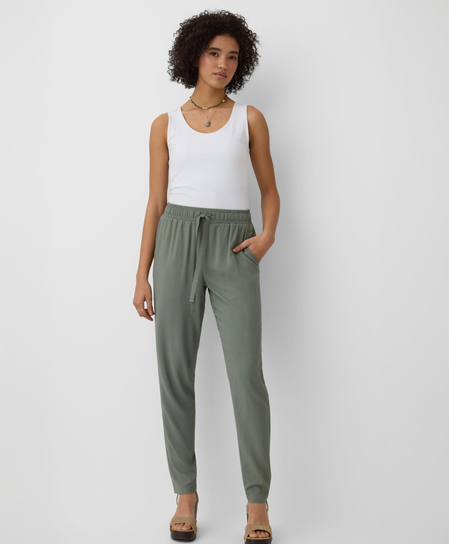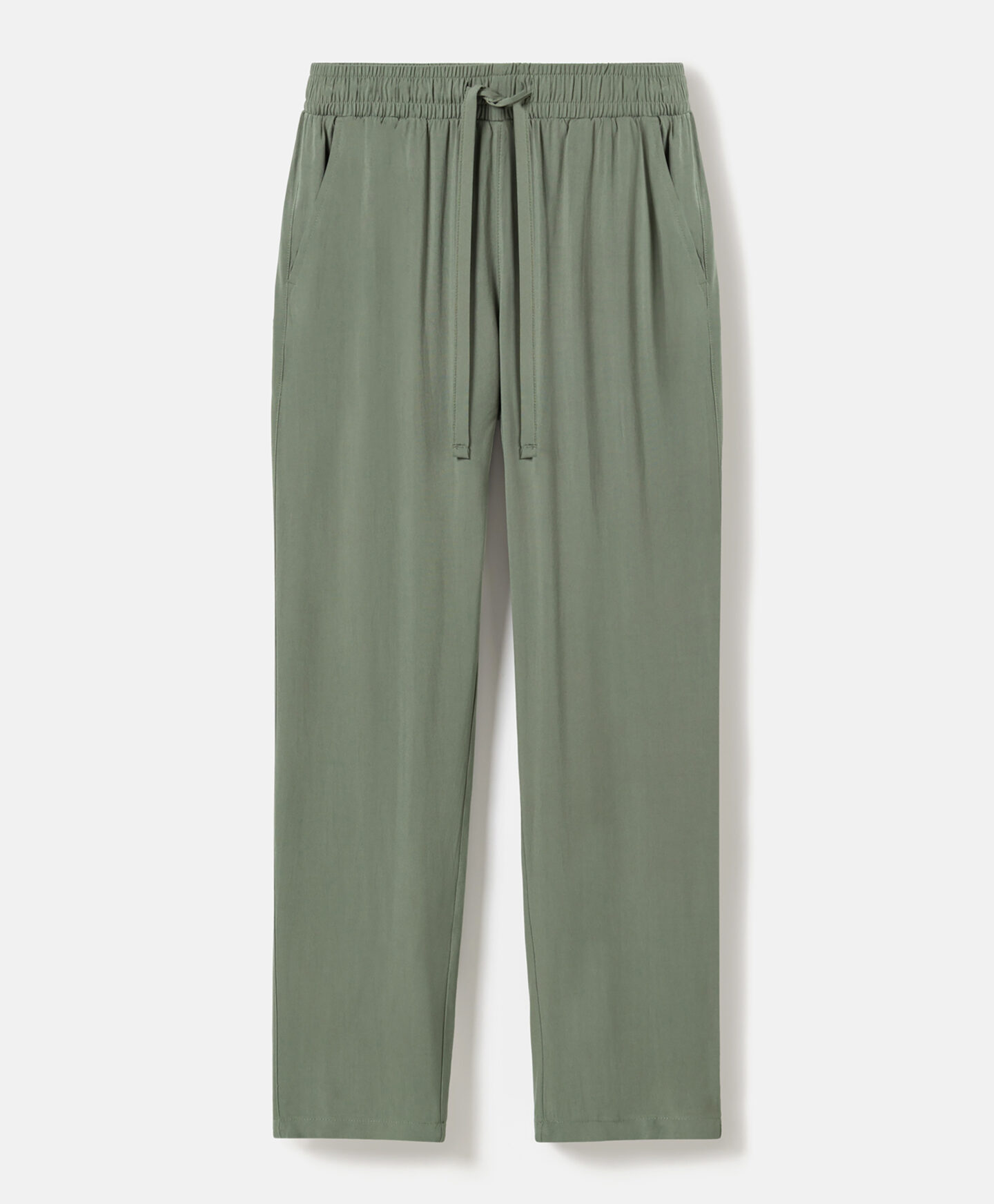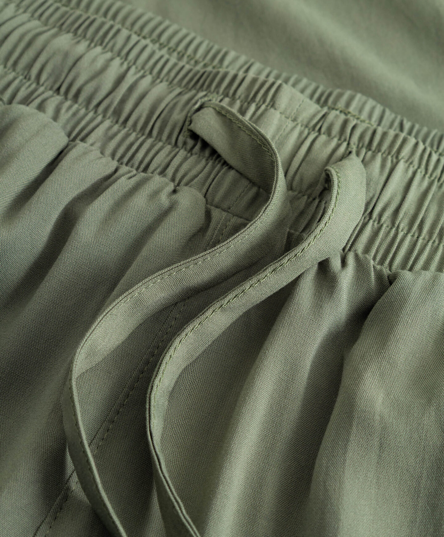 Ove zelene pantalone za žene od 100% viskoze savršen su izbor za žene koje cene stil i maksimalnu udobnost u svakodnevnom oblačenju. Vezivanje u struku omogućava savršeno prilagođavanje. Neutralna boja olakšava kombinovanje. Možete ih uklopiti sa bluzom, topom ili košuljom, u zavisnosti od prilike. Dostupne su dve boje.