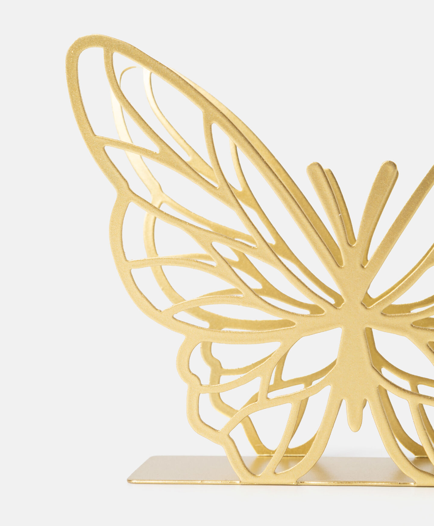 Zlatni držač za salvete u obliku leptira biće pravi ukras na vašem stolu. Odlično se uklapa uz klasično, ali i moderno posuđe, dodajući sjaj i prolećni karakter vašoj trpezi. Izrezbarena konstrukcija čini da držač izgleda veoma lagano i elegantno. Napravljen od izdržljivog metala, služiće vam tokom više sezona.