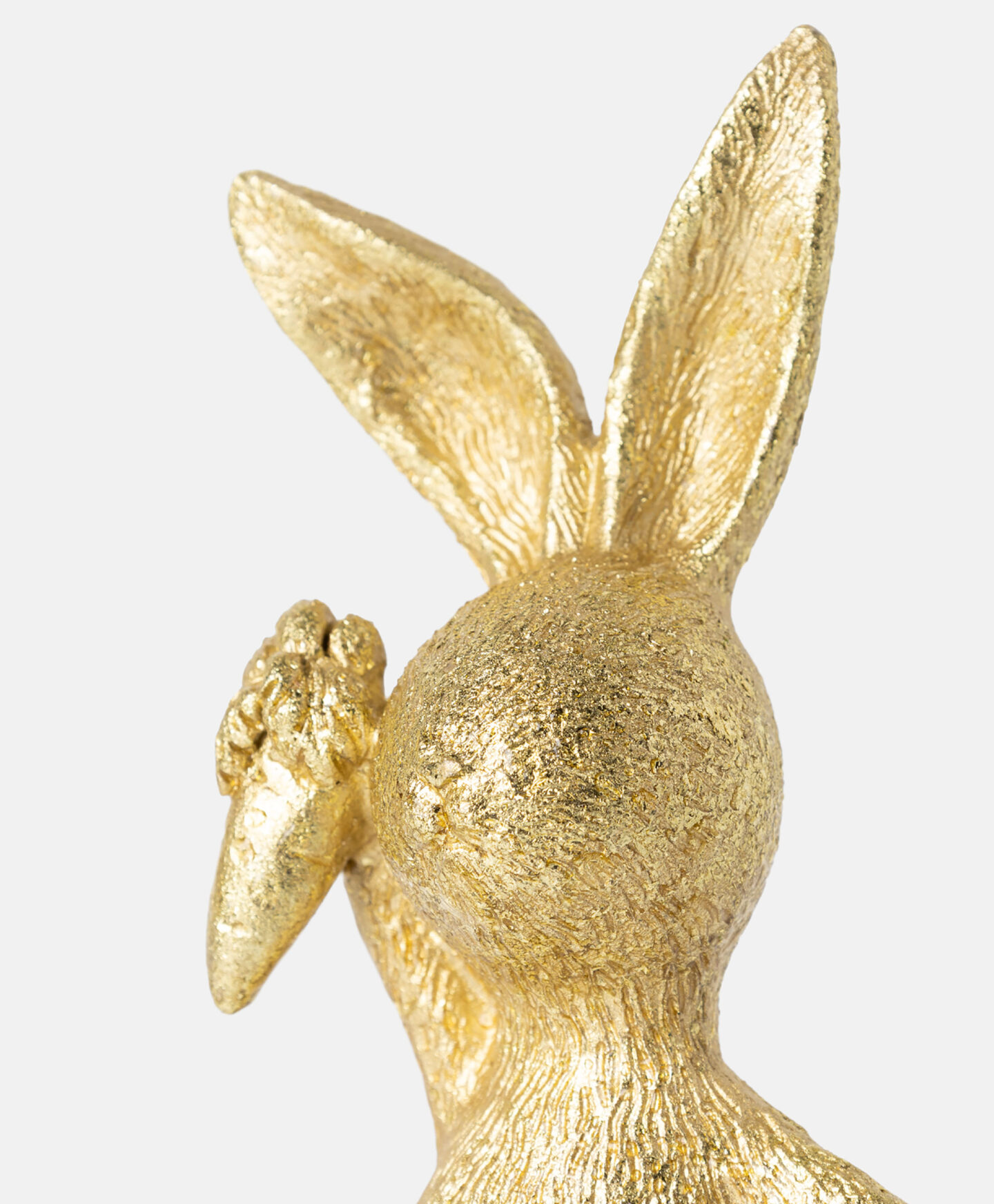 Zlatni zec sa šargarepom, izrađen od polirezina, privlači pažnju svojom suptilnom elegancijom. Polirezin je lagan i izdržljiv materijal koji odoleva protoku vremena i vremenskim uslovima, obezbeđujući dugotrajnost figurice. Ovaj zec je savršen izbor za sve koji traže nežne i elegantne dekorativne detalje. Dostupno u više dezena.