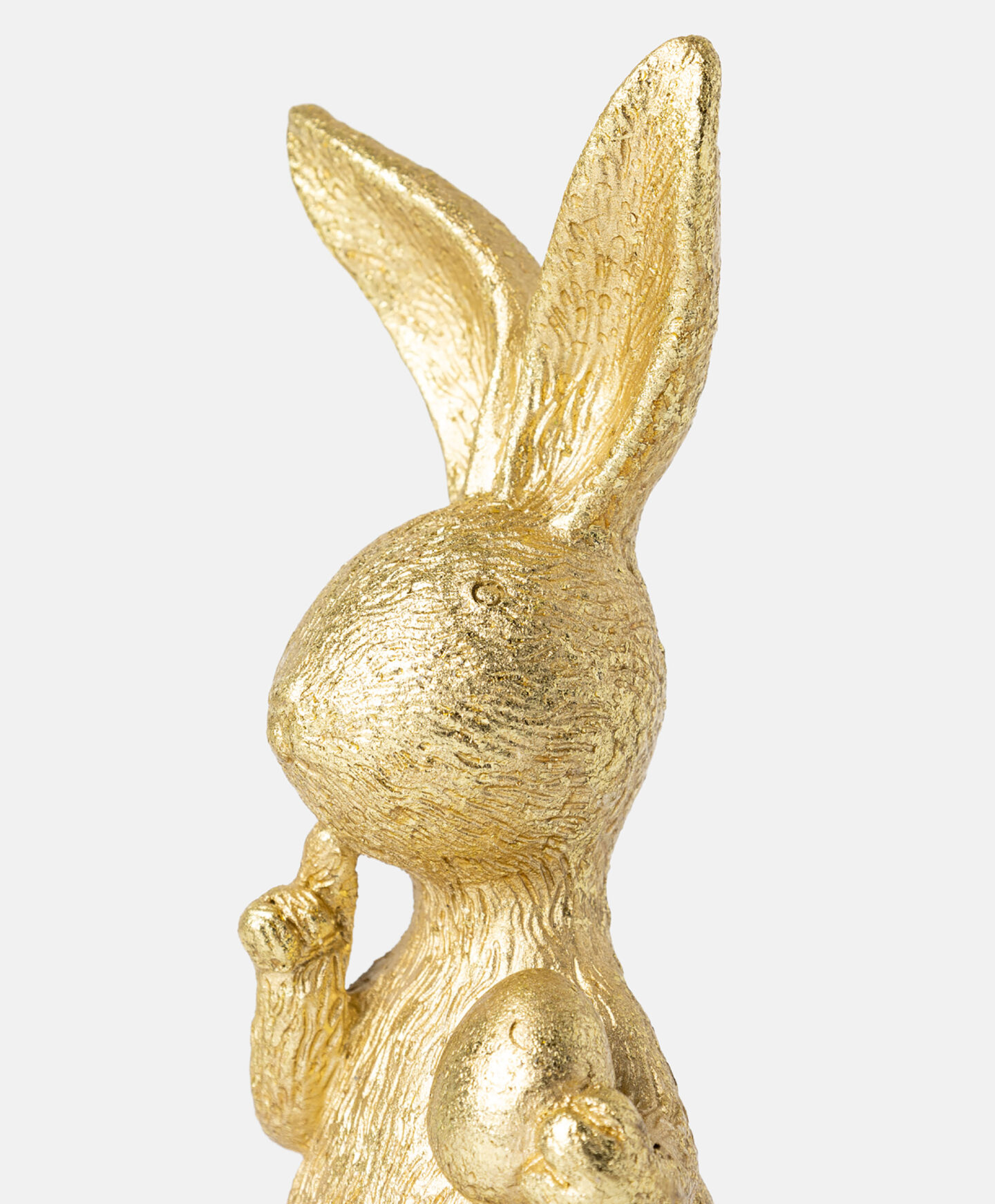 Zlatni zec sa uskršnjim jajetom izrađen od polirezina privlači pažnju svojom suptilnom elegancijom. Polirezin je lagan i izdržljiv materijal koji odoleva protoku vremena i vremenskim uslovima, obezbeđujući dugotrajnost figurice. Ovaj zec je savršen izbor za one koji traže nežne i elegantne dekorativne detalje. Dostupan je u više dezena.