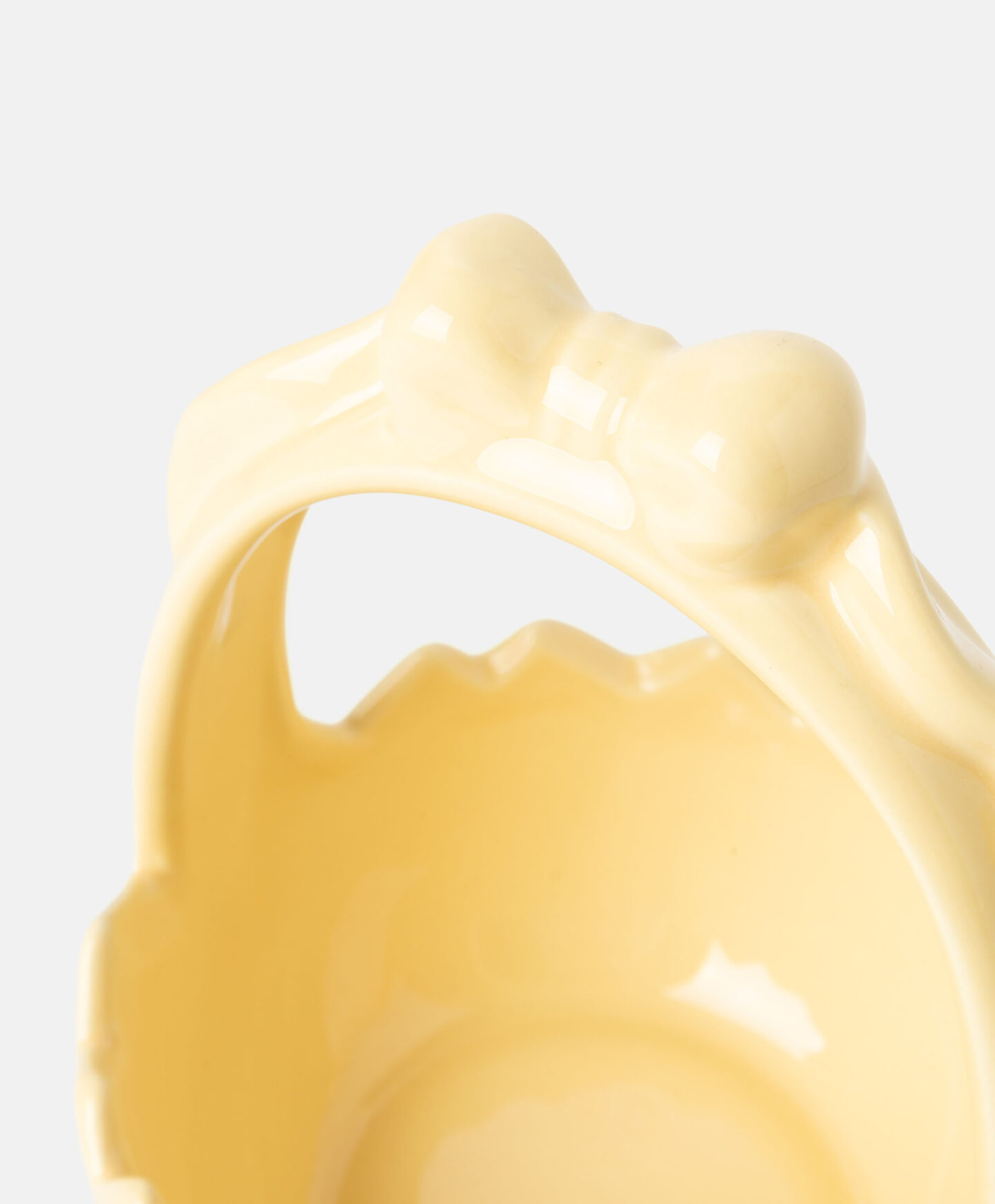 Žuta keramička korpa izgleda elegantno i oplemenjuje svaki prostor. Savršena je kao centralni uskršnji ukras ili dekoracija za trpezu. Dostupna je u tri različite boje.