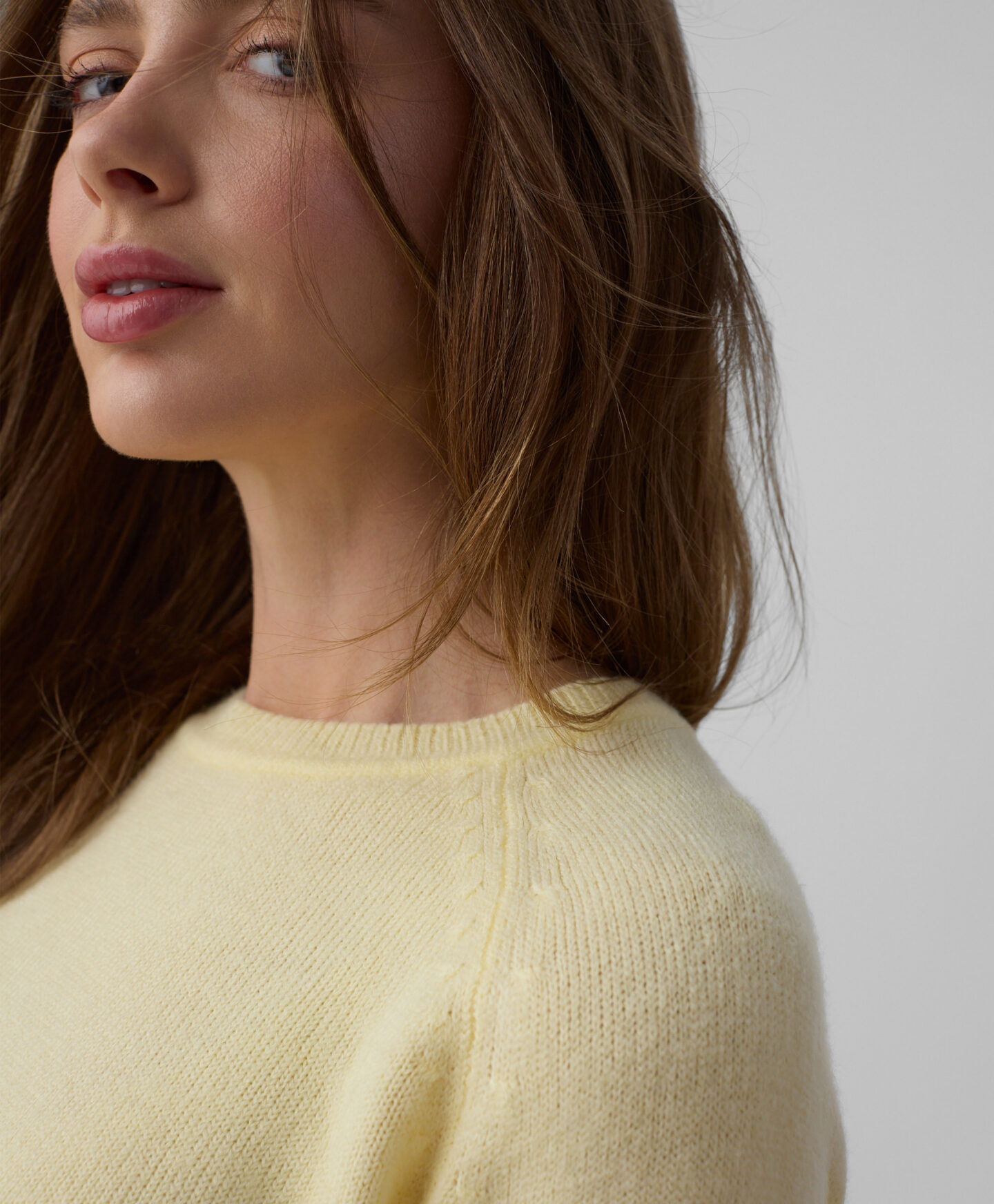 Žuti džemper za žene sa raglan rukavima nudi potpunu slobodu pokreta. Možete ga uklopiti sa suknjom, elegantnim pantalonama ili farmerkama i uživati u modernoj kombinaciji za svaku priliku. Model je dostupan u dve boje.